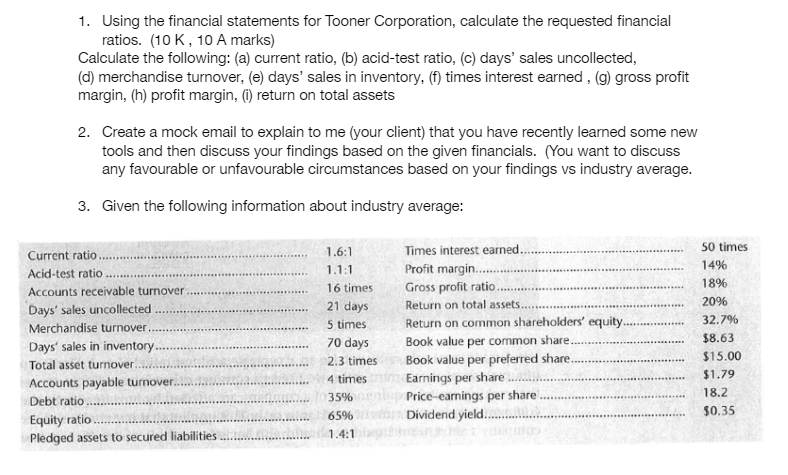 Solved 1 Using The Financial Statements For Tooner Chegg Com